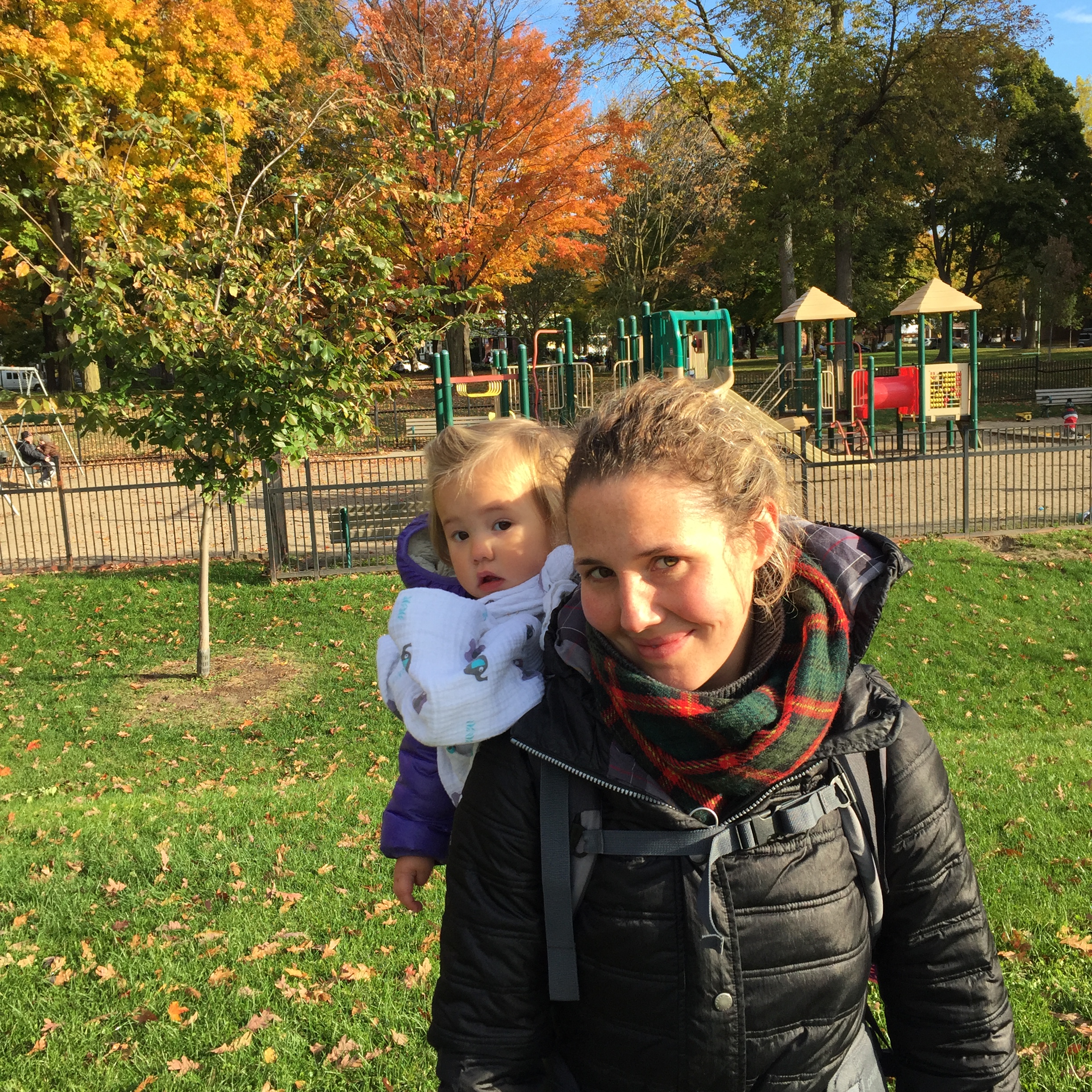When we have the car or we’re trekking a little further, we use the Maclaren Triumph. It’s light and folds up fairly compact so it fits well in the car without taking up all the trunk space. It also has a handy strap to make carrying or lifting while folded less awkward. For an umbrella stroller it has a decent-sized basket and ours has a pocket in the back to carry smaller items like a wallet, phone, money that sort of thing. We also got a cup holder, which is ok. Cup holders on stroller generally aren’t amazing, but it’ll do in a pinch. The stroller has a great rain cover and though the canopy is pretty useless if you’re walking into the sun, I’ve discovered that throwing a muslin over it keeps the rays from blinding the wee one without blocking her view.
