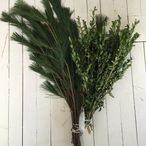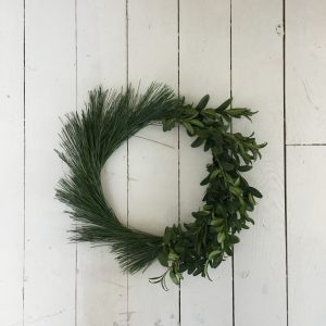 I chose white pine and boxwood. You can usually find branches this time of year at any mom and pop garden store and even some grocery stores. Since I made my wreaths, I’ve seen magnolia, other types of fir and pine, holly and some beautiful berries. I’m actually considering making some more because it seems like the options just keep expanding the closer we get to Christmas. I feel confident enough now to experiment more the next time too. Think we could maybe use a garland for the porch, don’t you?