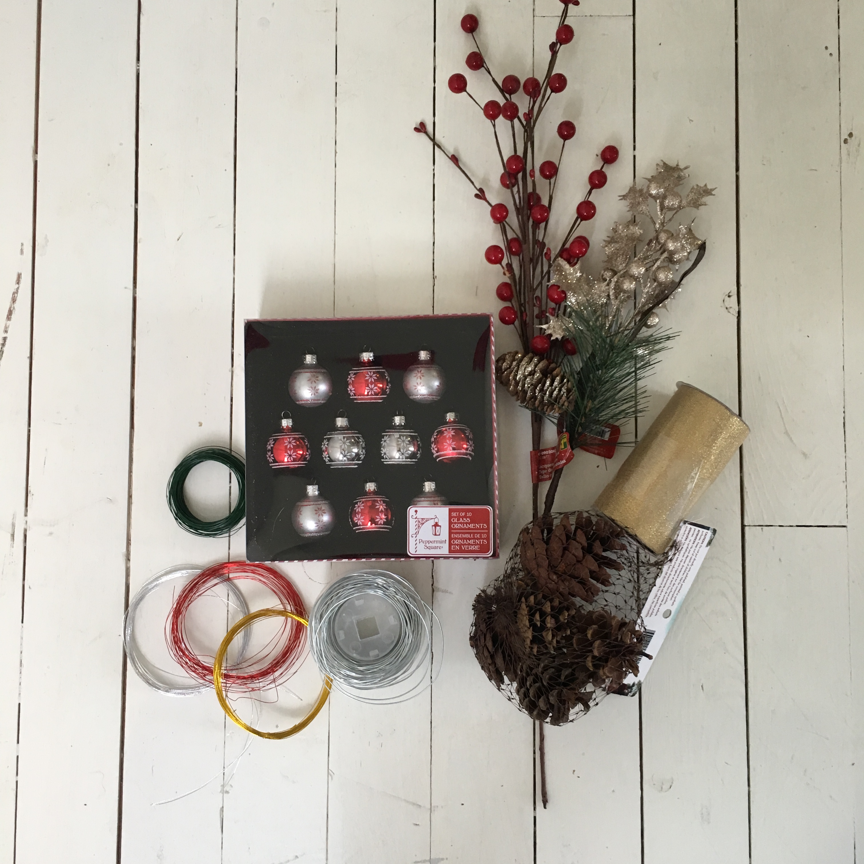 Decorations (pinecones, ribbon, ornaments, cranberries, etc.)