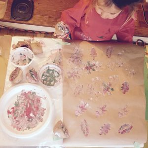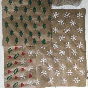 One thought on “Holiday crafting: potato stamp wrapping paper.”
