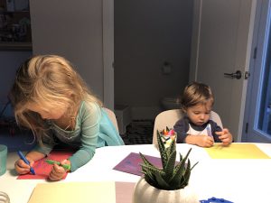 Even during a typical meal, I’m up every few minutes. Refilling, replenishing, wiping, retrieving, what have you. I spend a lot of energy showing them how to do things themselves, but even still showing and explaining does not always equate to them doing the thing themselves. And then I have those moments where my kids are completely occupied and I sit. Oh how I sit. In these rare moments, no one is asking for a thing or in need of my services. A beautiful picture of two happily playing children. All is well.